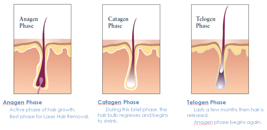 Because hair growth goes through three stages: growth phase, catagen phase and telogen phase. The anagen hair follicles have melanin, so the laser mainly destroys the anagen hair follicles, while the degenerative hair follicles have less melanin, and the telogen hair follicles have no melanin, so the laser has no therapeutic effect on it. For it to be effective, laser hair removal requires three to five treatments to complete its course, with an interval of 20-45 days between treatments.