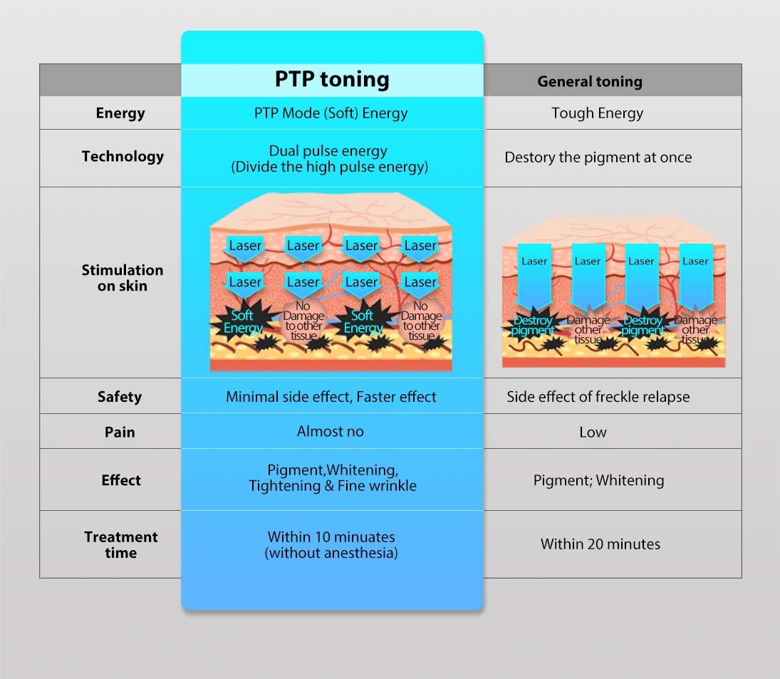 It uses a picosecond laser with high power and ultra-short pulses. A picosecond is a trillionth of a second! The ultra-short pulses with the Picosecond laser are important because they lead to a “photoacoustic” effect that avoids heating the skin rather than a photothermal (or heat) approach that heats the skin and can lead to side effects, such as downtime and scarring.